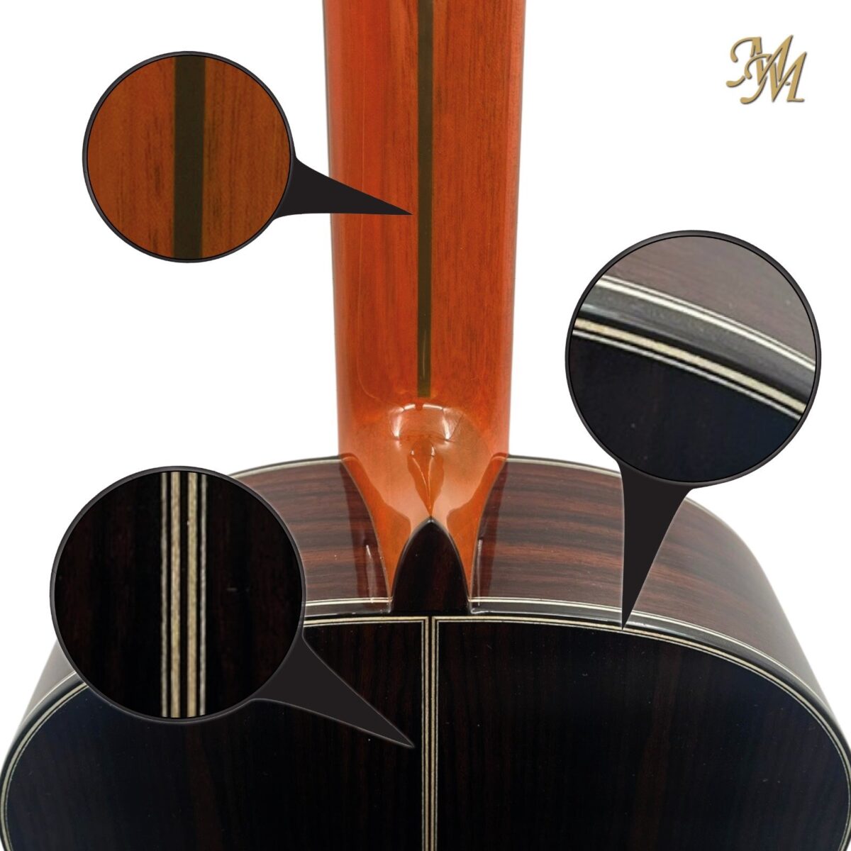 Mastil: Cedro con refuerzo de ebano y alma regulable