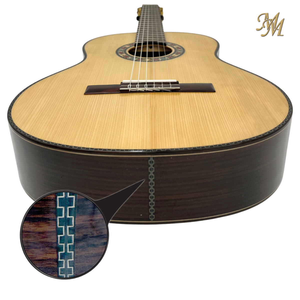 Su roseta elegante y de aire flamenco recuerda a las grandes guitarras. Gracias a su construcción especial, ofrece una tensión equilibrada, acción baja y comodidad, con un sonido profundo, poderoso y lleno de matices, que combina brillo, proyección y calidez propios del palosanto.
