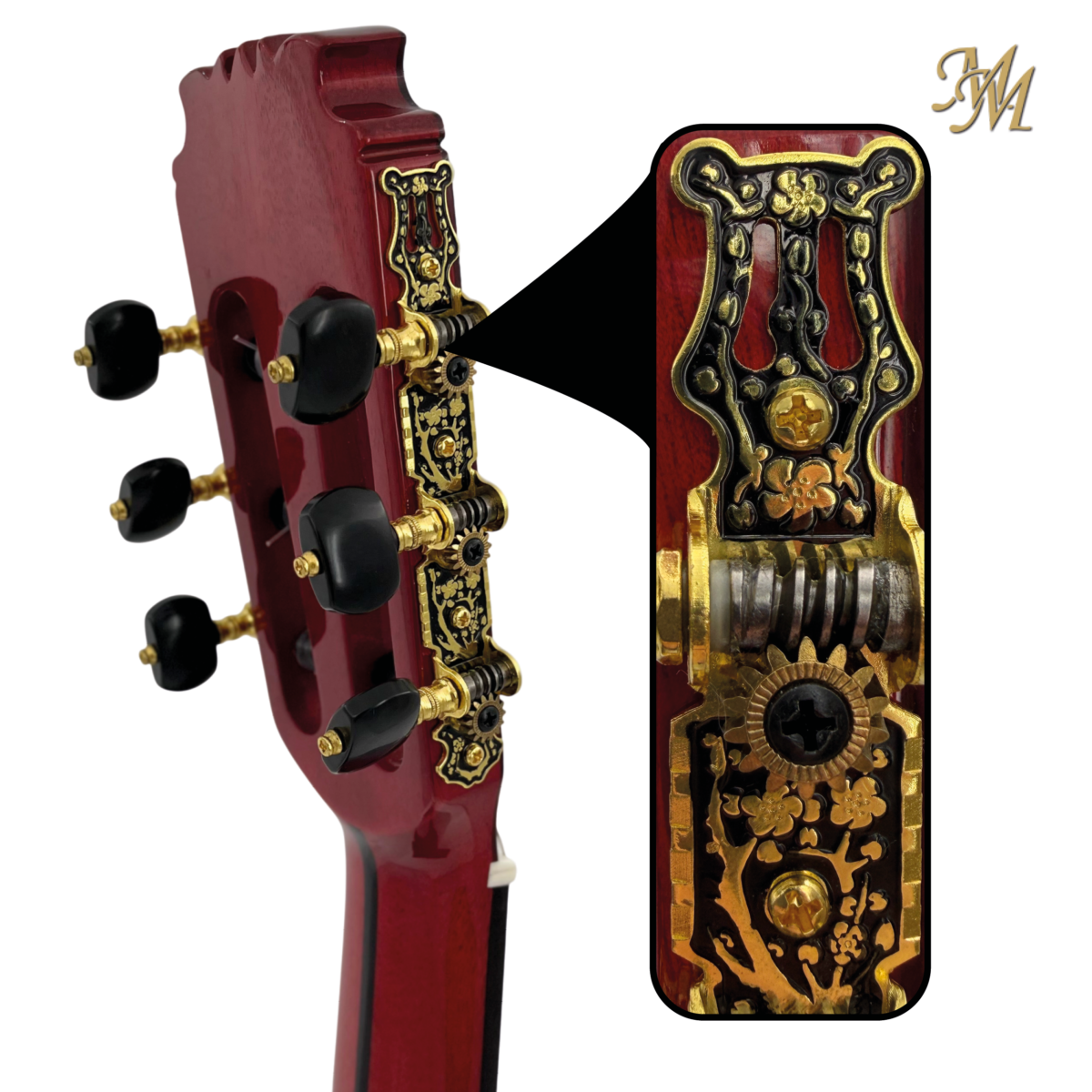 Clavijero: Chapado en oro de ley, esmaltado y con lira.