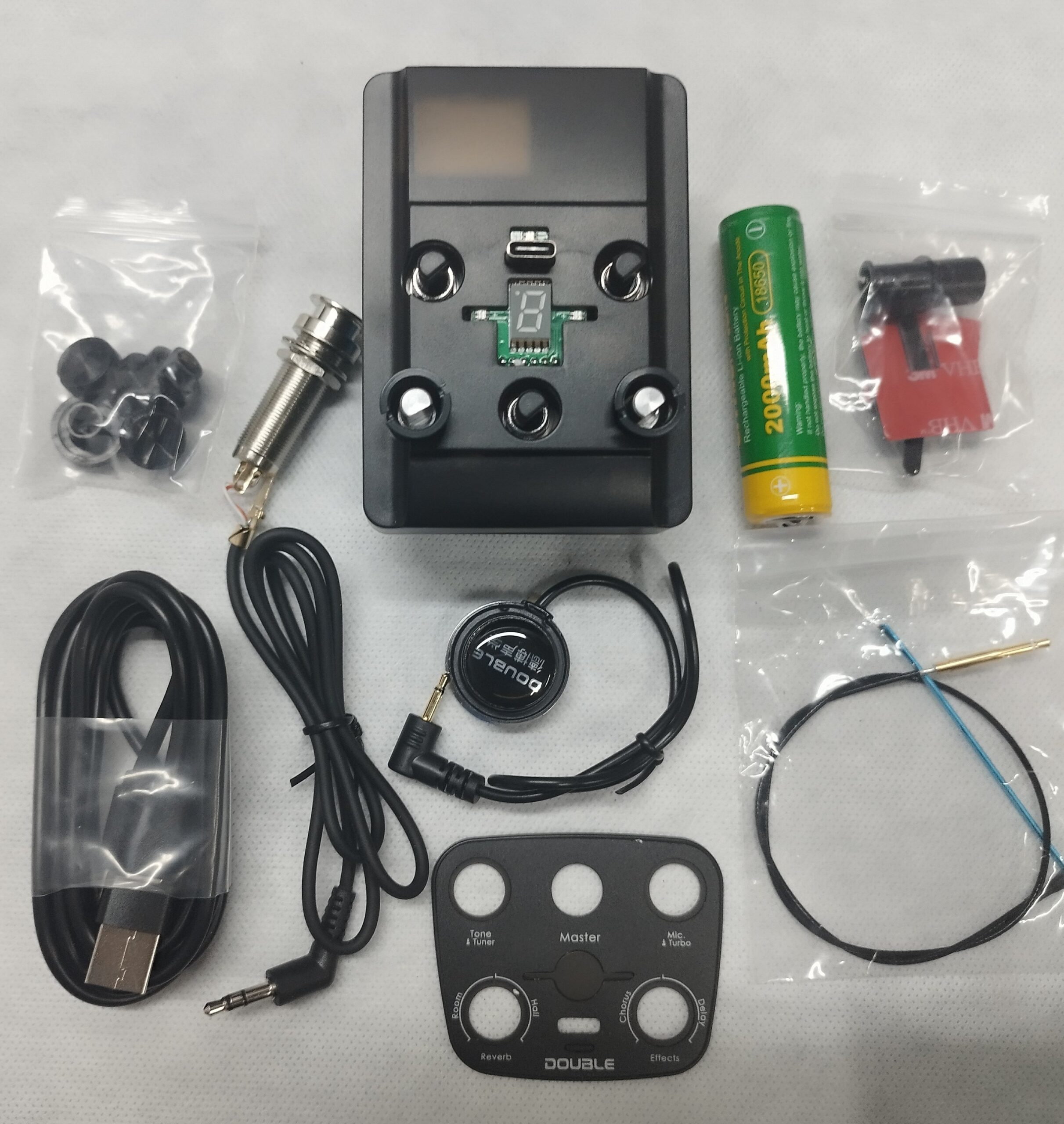 Está equipado con transductor que se instala en el interior de la guitarra, lo cual consigue que aunque no estemos conectados a un amplificador podamos estar usando los efectos reverb, chorus y delay, así como el bluetooth y reproducir canciones, bases o pistas mientras tocamos. Cable USB de carga incluido Kit completo para instalar con bateria incluida. Tambien ofrecemos instalacion. (Ver pestañas de opciones al hacer la compra)